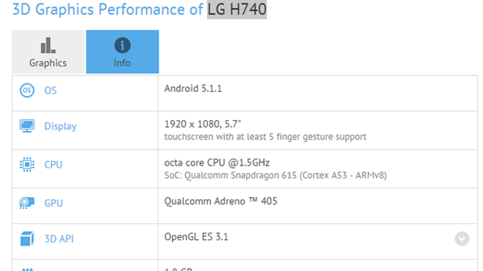 Смартфон LG H740 появился в базе данных ПО GFXBench, благодаря чему мы знаем параметры готовящейся новинки. Скорее всего, её представят на мероприятии 1 октября.