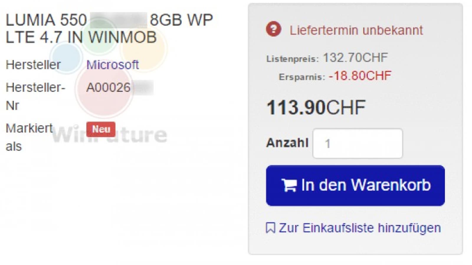 Смартфон Lumia 550 также может пополнить ассортимент программного гиганта. Сейчас один из европейских интернет-магазинов принимает предзаказы на аппарат. Стоимость равна $117. Если верить источнику, смартфон будет основан на платформе Snapdragon 210 с поддержкой LTE и получит экран диагональю 4,7 дюйма разрешением 1280 х 720 точек. Также известно о 8 ГБ флэш-памяти. В целом, модель будет похожа на Lumia 540, но сможет похвастаться поддержкой сетей четвёртого поколения.