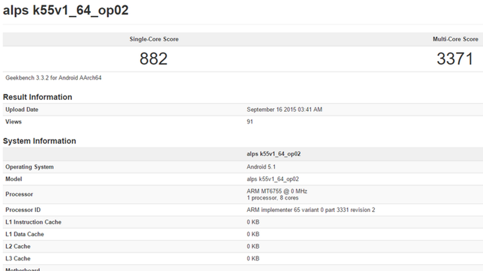 Итак, платформа в составе неизвестного смартфона набирает 882 балла в однопоточном режиме и 3371 балл в многопоточном. На фоне платформы MT6752 эти результаты выглядят достаточно странно (для сравнения — обзор Meizu M1 Note). Процессорная часть у данных SoC идентична, но у Helio P10 она должна работать на ощутимо большей частоте. К сожалению, именно она в ПО и не указана, так что, возможно, система в тестовом аппарате функционировала на частоте ниже 2 ГГц.