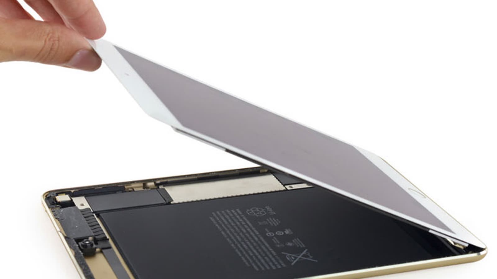 В новом планшете жидкокристаллическая панель и защитное стекло объединены в один компонент. Планшет при этом стал тоньше, и его стало немного легче разбирать. С другой стороны, риск повредить экран при разборке вырос, и ремонт, связанный с заменой защитного стекла или экрана теперь обходится дороже, поскольку меняется все сразу. К недостаткам также отнесено щедрое использование клея, крепление разъема Lightning прямо к плате и сложная процедура демонтажа кнопки Home. Между тем, ее необходимо демонтировать при замене экрана.