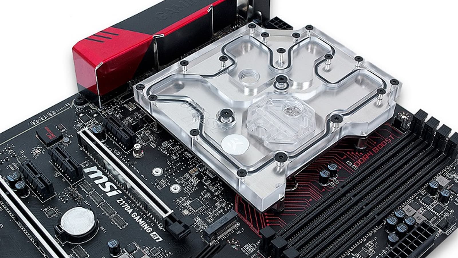 Элементы системы питания контактируют с теплосъемником через теплопроводящую прокладку, а для процессора предназначена комплектная термопаста EK-TIM Ectotherm. Водоблок EK Water Blocks EK-FB Z170G оценен в 120 евро.
