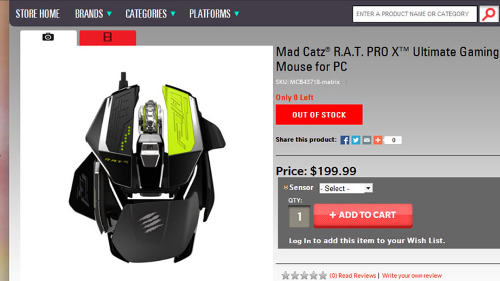 В августе компания Mad Catz анонсировала мышь Mad Catz R.A.T. Pro X со сменным датчиком. Тогда производитель не стал называть цену новинки, но пообещал, что поставки начнутся в октябре. На этой неделе планы Mad Catz воплотились в жизнь: мышь появилась в ассортименте онлайнового магазина компании. Хотя пока устройства нет в наличии, указана его цена. Она равна $200.