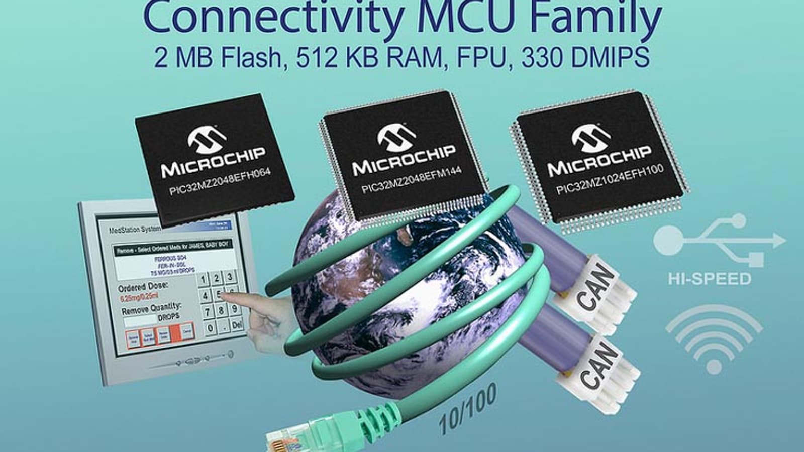 Ассортимент Microchip пополнили 32-разрядные микроконтроллеры серии PIC32MZ EF. Серия включает 48 моделей. К достоинствам новых микроконтроллеров производитель относит наличие блока вычислений с плавающей запятой и 12-разрядного АЦП с быстродействием 18 млн отсчетов в секунду. Кроме того, стоит отметить поддержку большого числа команд цифровой обработки сигналов и наличие многочисленных периферийных блоков.