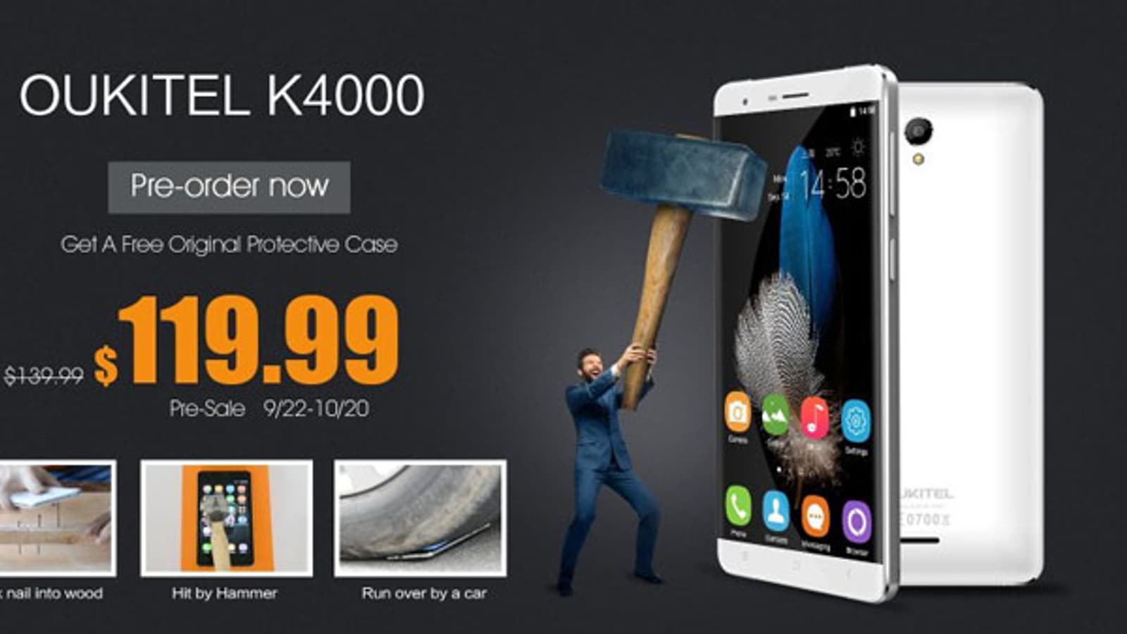 Компания Oukitel начала прием предварительных заказов на смартфоны K4000, которыми можно забивать гвозди. Впрочем, о гвоздях — позже.