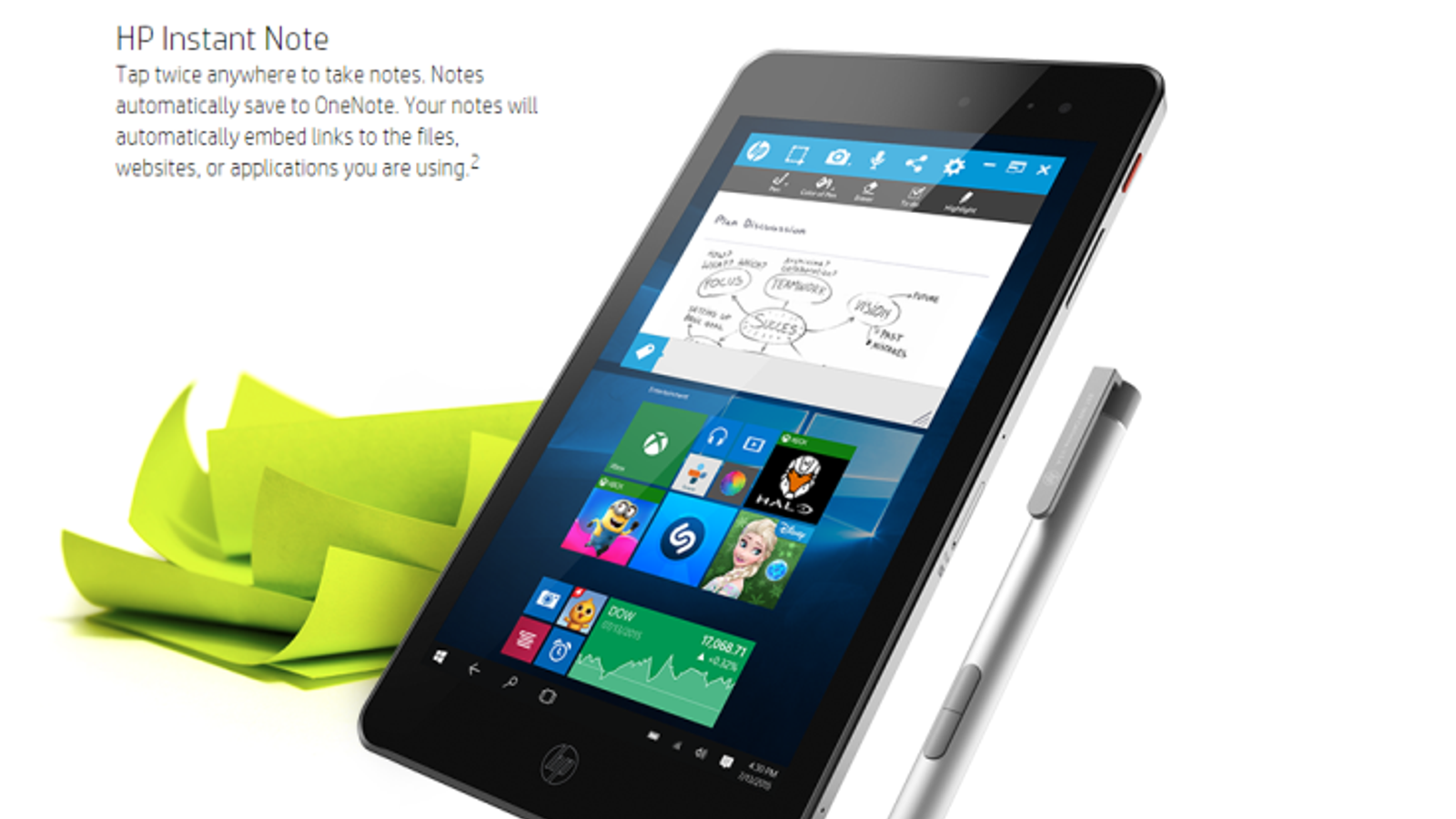 Ещё одним представленным сегодня устройством HP является планшет Envy 8 Note, работающий под управлением Windows 10. Устройство оценивается в $330 либо $430 в зависимости от наличия в комплекте подключаемой клавиатуры.
