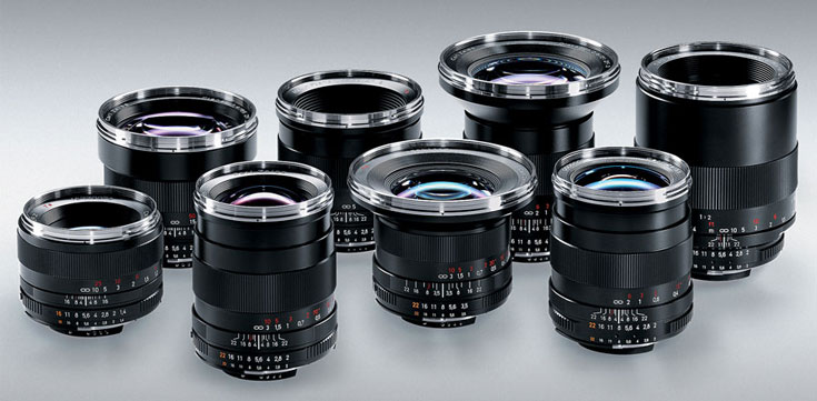 Полный список включает модели Zeiss Distagon T* 3.5/18 ZF, Zeiss Distagon T* 2.8/21 ZF.2, Zeiss Distagon T* 2.8/25 ZF, Zeiss Distagon T* 2/28 ZF, Zeiss Distagon T* 2/35 ZF.2, ZF, Zeiss Planar T* 1.4/50 ZF, Zeiss Makro-Planar T* 2/50 ZF.2, ZF, Zeiss Planar T* 1.4/85 ZF и Zeiss Makro-Planar T* 2/100 ZF.2, ZF.