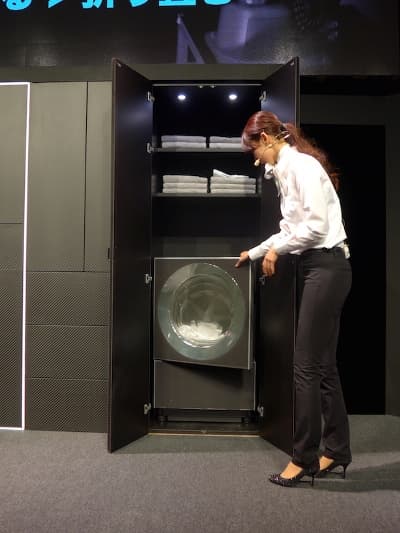 Показанный прототип, который по размеру сравним с большим холодильником, может за 5-10 минут, в зависимости от режима стирки, позволить вам надеть чистые вещи, даже если вы вспомнили о том, что не стирали их, перед самым выходом из дома.