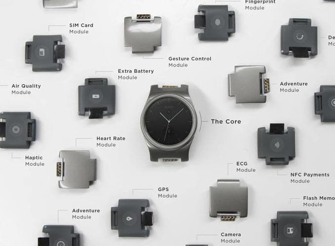 Заплатив $250 (скидка -37,5%), вы получите часы и четыре модуля на выбор. Модулей у Blocks будет много, среди них слот для SIM-карты, модуль, распознающий жесты, сканер отпечатков пальцев, дополнительная батарея, камера, флэш-накопитель, модуль NFC и так далее. После подключения модулей вам не нужно перезагружать часы, они начинают работать сразу же.