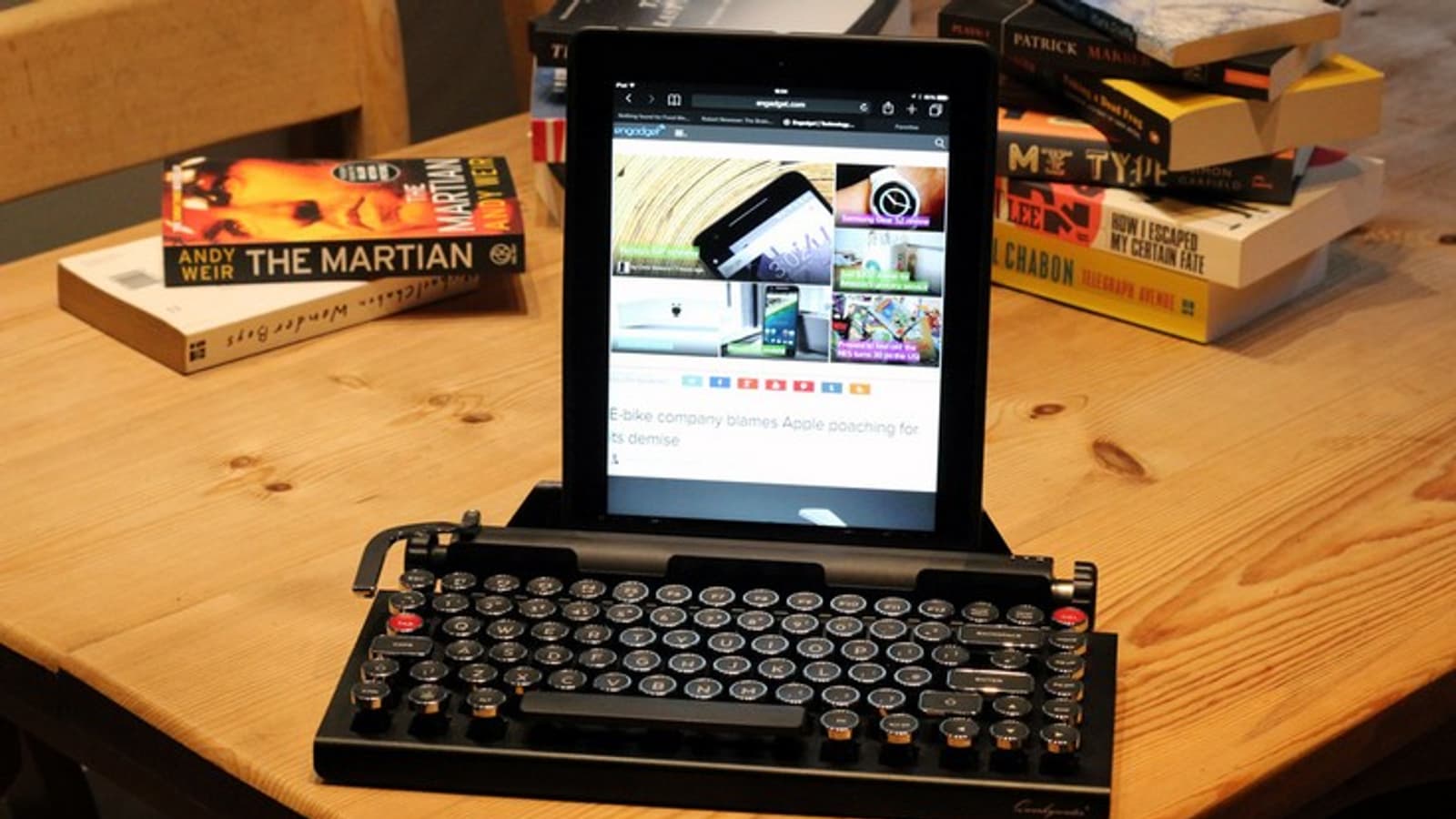 Устройство Qwerkywriter компании Qwerky Toys также выглядит достаточно необычно. Qwerkywriter — беспроводная клавиатура для планшетов iPad, выступающая также в роли подставки. Вот только выглядит клавиатура так, будто её создавали лет 100 назад. На самом же деле новинка просто выполнена в стиле классической печатной машинки Olivetti Studio 42.