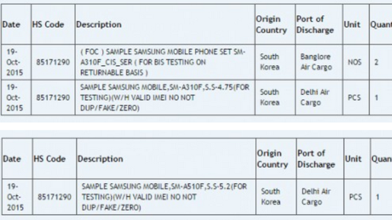 На сайте Zauba появились данные о смартфонах Samsung SM-A310F и SM-510F, которые, судя по каталожным номерам, будут являться последователями моделей Galaxy A3 и A5. Если учесть, что аппараты были представлены примерно год назад, предположение о появлении обновлений видится вполне логичным.