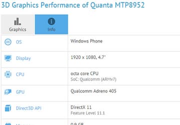 Устройство под названием Quanta MTP8952 построено на платформе Qualcomm Snapdragon 615 и оснащено экраном диагональю 4,7 дюйма