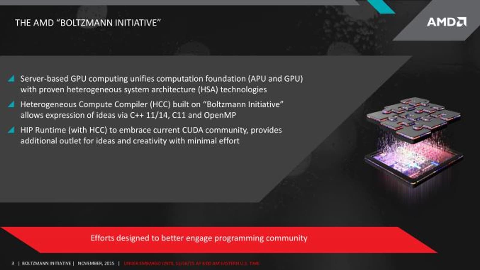 Компания AMD на днях анонсировала программу под названием Boltzmann Initiative, нацеленную на улучшение своих позиций в сегменте высокопроизводительных систем, включая суперкомпьютеры.