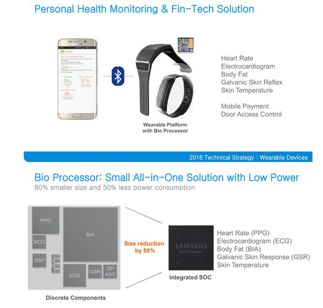 Это позволит сделать универсальные мониторы состояния здоровья гораздо компактнее. Samsung заявляет, что её биопроцессор на 80% компактнее и на 50% энергоэффективнее, чем аналогичные решения. Также различные умные часы и трекеры активности получат новые возможности. Конечно, уже сейчас на рынке есть браслеты Microsoft Band, оснащённые огромным количеством датчиков, но это как раз таки сказалось на их габаритах.
