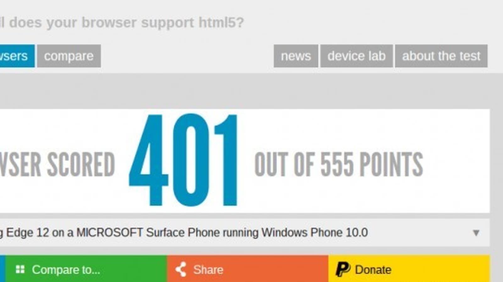 Дело в том, что такое устройство появилось в базе ПО HTML5test. Оно работает под управлением Windows 10 Mobile. Правда, разрешение экрана почему-то указано равным 640 х 360 пикселей, но это может быть ошибкой программы.