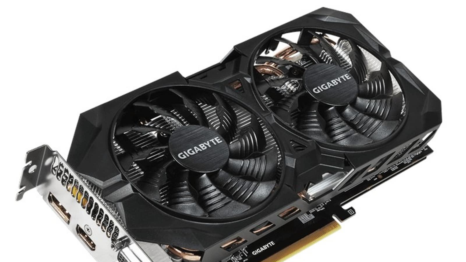 Модель Gigabyte не может похвастаться сколько-нибудь существенным разгоном. Память объёмом 4 ГБ работает на стандартной частоте 5700 МГц, а GPU получил прибавку лишь 100 МГц. Несмотря на это, устройство получило вполне соответствующую своему уровню систему охлаждения WindForce 2X с тремя тепловыми трубками и парой крупных вентиляторов. Тыльную сторону прикрывает металлическая пластина.
