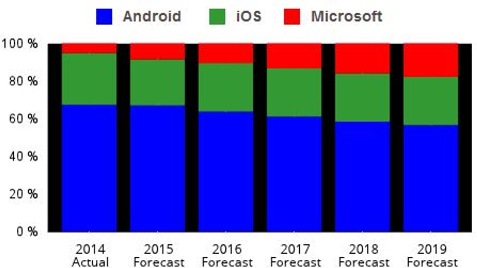 Поставки планшетов с экранами размером 9-13 дюймов, напротив, будет увеличиваться. В 2014 году она была равна 35,8%, в это году ожидается показатель 41,9%, а в 2019 году доля таких планшетов достигнет 55,1%.