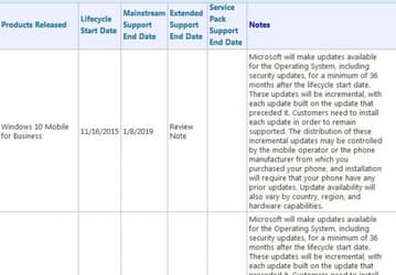 Поддержка Windows 10 Mobile прекратится в январе 2019 года