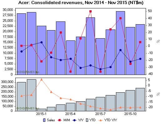 В тоже время, доход за первые 11 месяцев нынешнего года оказался на 19,93% меньше, чем за такой же период 2014 года. Отчасти это объясняется трансформацией бизнеса, проводимой Acer. Компания корректирует продуктовые линейки, стараясь вывести на передний план продукцию, приносящую больше прибыли, такую, как игровые системы и компоненты.