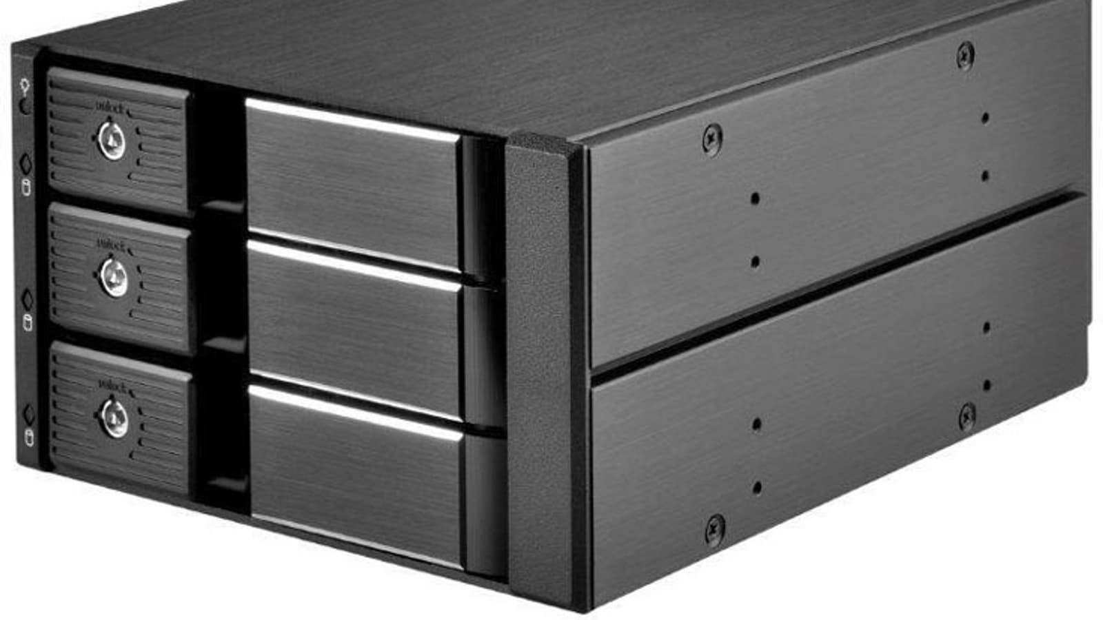 Модель FS303 обеспечивает установку трех таких накопителей в два расположенных рядом отсека для оптических приводов.