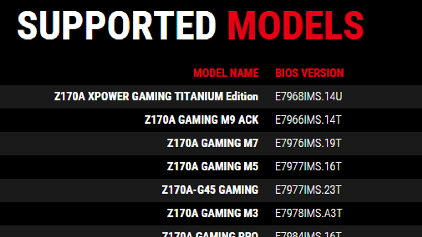 Первой в игру вступила ASRock, предоставив нужные версии BIOS для всех своих системных плат, подходящих под условия. Теперь же инициативу поддержала и MSI. 15 системных плат с логикой Z170 получили новую версию BIOS, позволяющую разгонять младшие процессоры Skylake. Список моделей и необходимых версий BIOS можно увидеть на изображении.