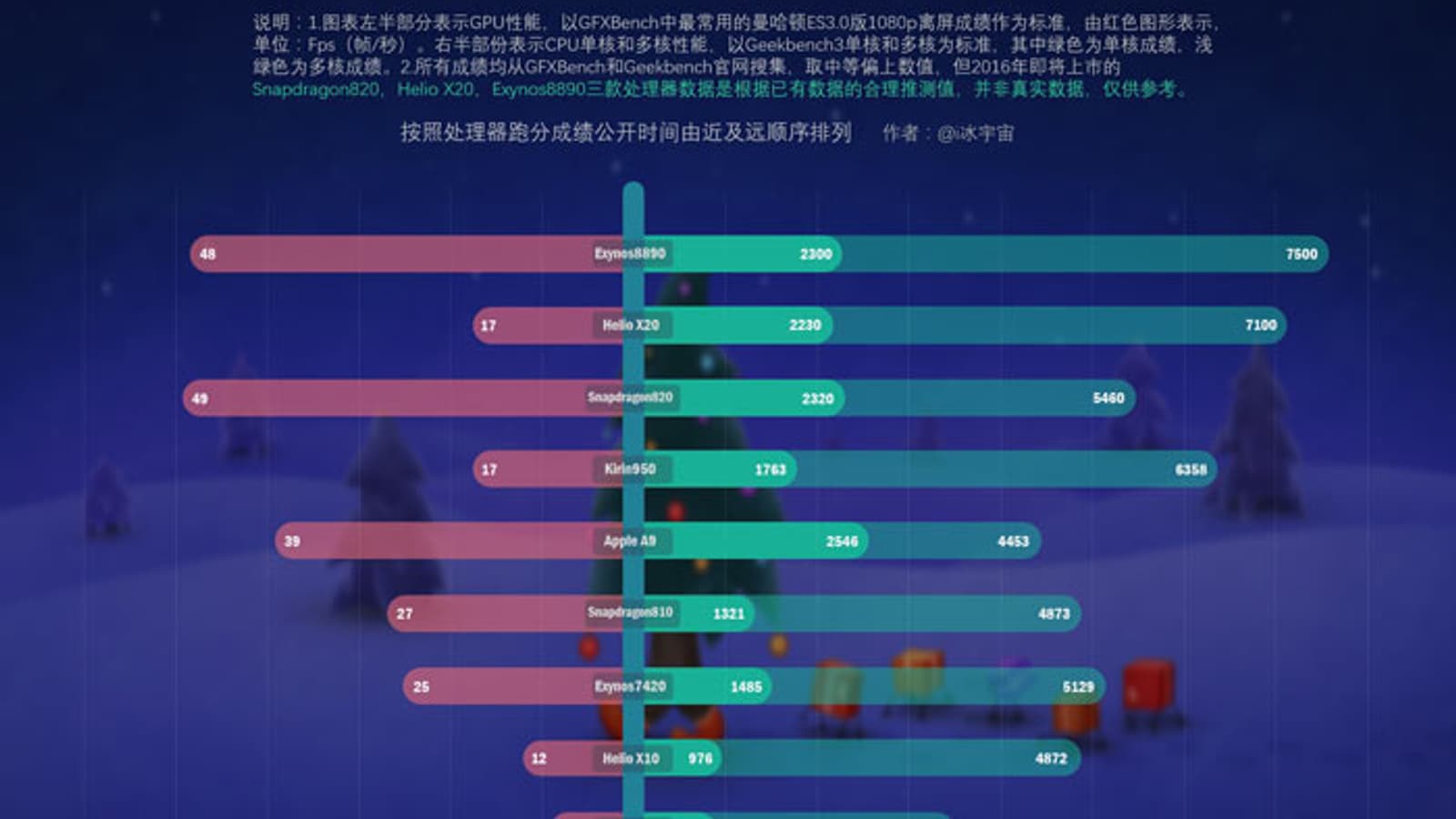 Пока технические характеристики SoC Exynos 8870 неизвестны, можно изучить данные о производительности других флагманских SoC по состоянию на начало 2016 года. График включает результаты Samsung Exynos 8890, Qualcomm Snapdragon 820, Kirin 950, Helio X20 и Apple A9 в тестах GFXBench (GPU) и Geekbench 3 (CPU).