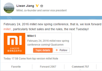 Весенняя конференция компании Xiaomi запланирована на 24 февраля, в этот день в продажу и поступит Xiaomi Mi5