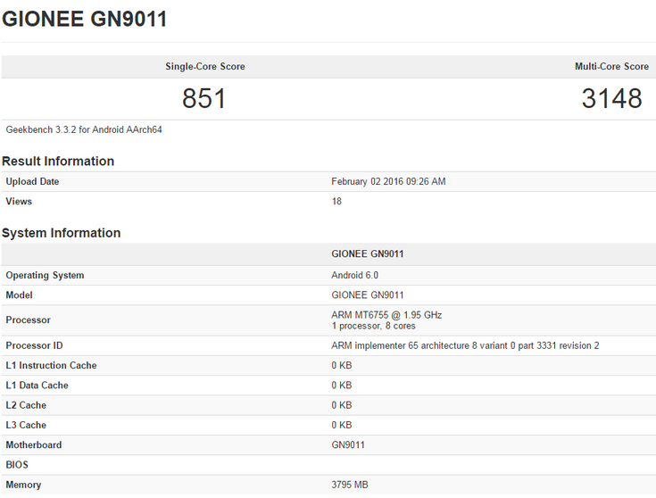 Однако такая вероятность всё же есть. Дело в том, что в базе данных ПК Geekbench появился аппарат Gionee GN9011. И это явно будет флагманское устройство, так как сердцем послужит SoC MediaTek Helio P10, а объём оперативной памяти составит 4 ГБ. Не исключено, что речь именно о Elife S8.