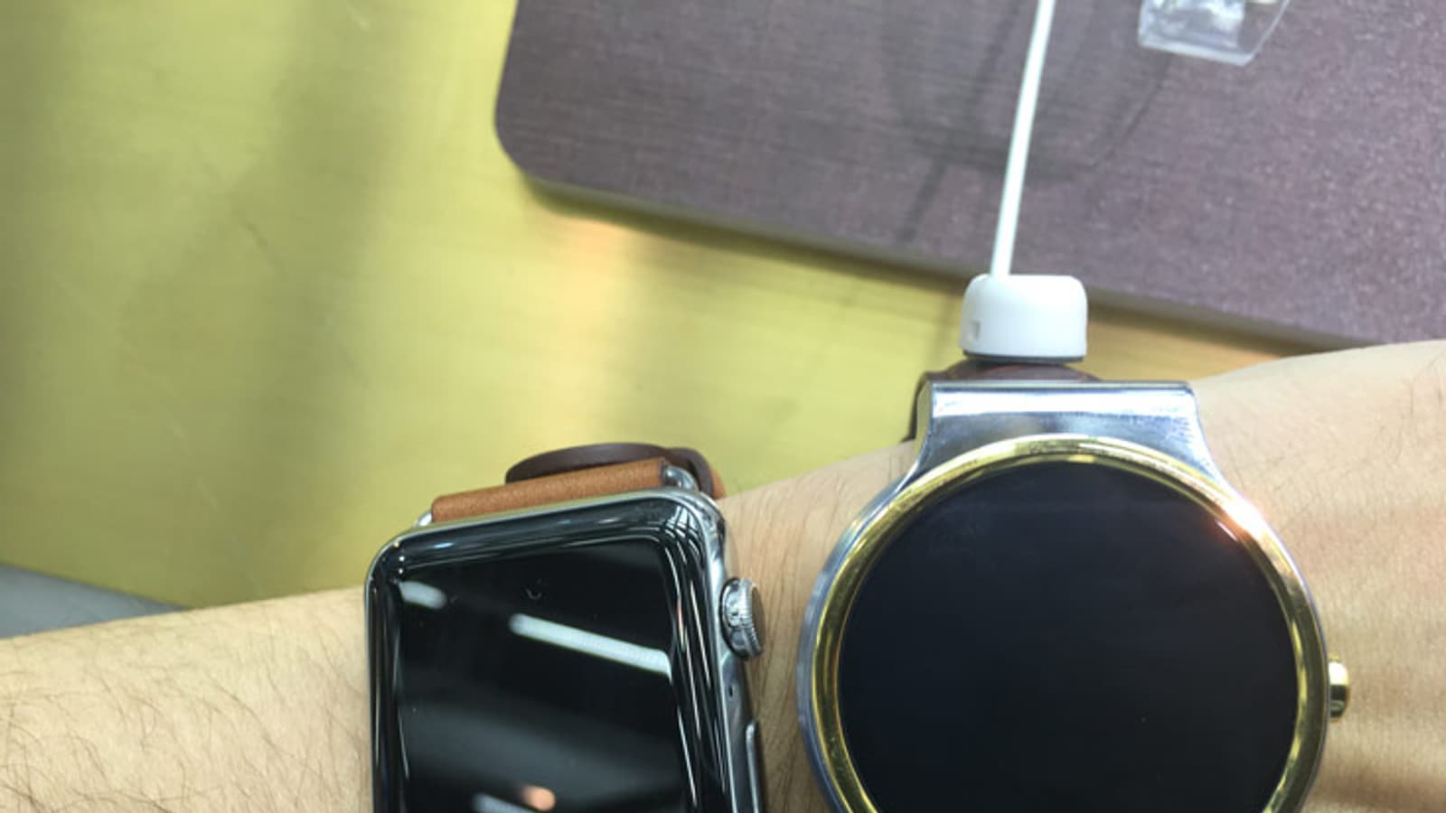 Часы из экспозиции ZTE укомплектованы кожаным ремешком.