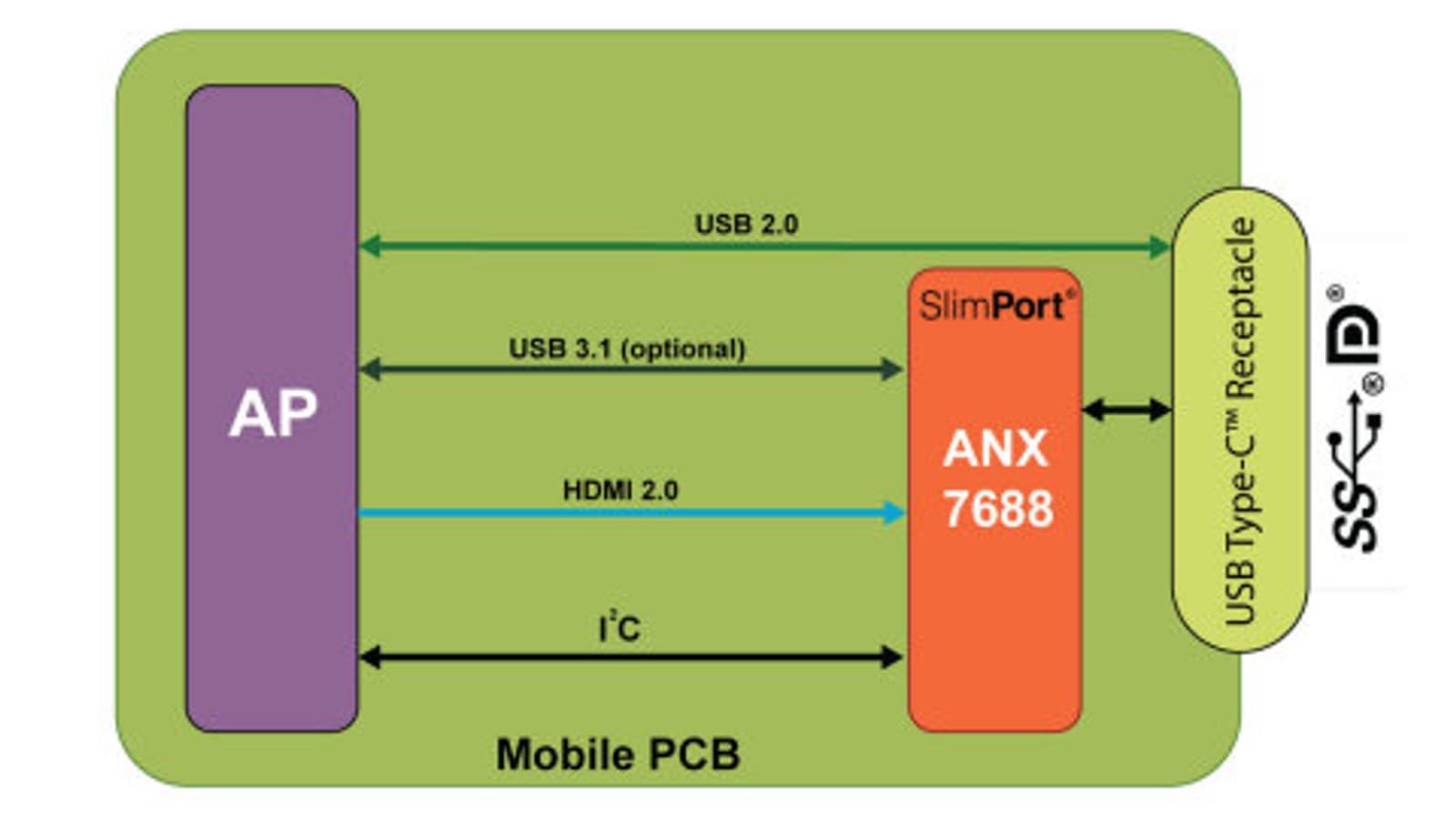 Компания заявляет, что SlimPort ANX7688 представляет собой первый однокристальный мобильный передатчик с поддержкой видео 4K с кадровой частотой 60 к/с и видео Full HD с кадровой частотой 120 к/с.
