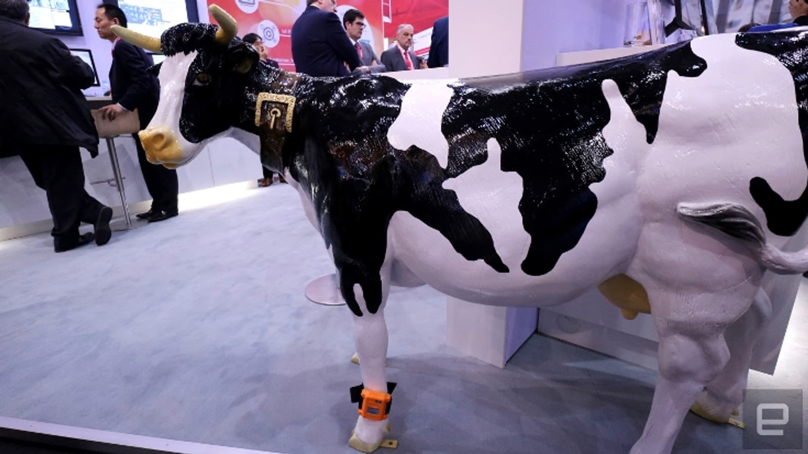 Конечно, не настоящую. Макет позволял нагляднее продемонстрировать новую разработку Fujitsu — Estrus Detection System for Cattle (EDSC). Это специальное устройство, предназначенное для помощи фермерам. Цель — повысить эффективность разведения крупного рогатого скота.
