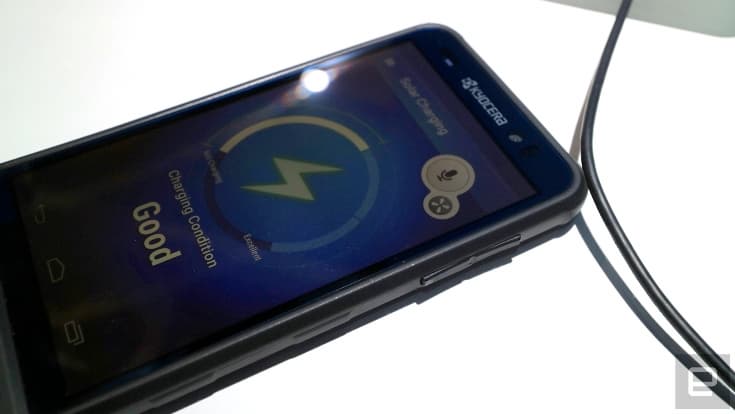 Японская компания Kyocera похвасталась прототипом именно такого устройства. Если посмотреть на фото, возникает вопрос, а где же, собственно, та самая солнечная панель.