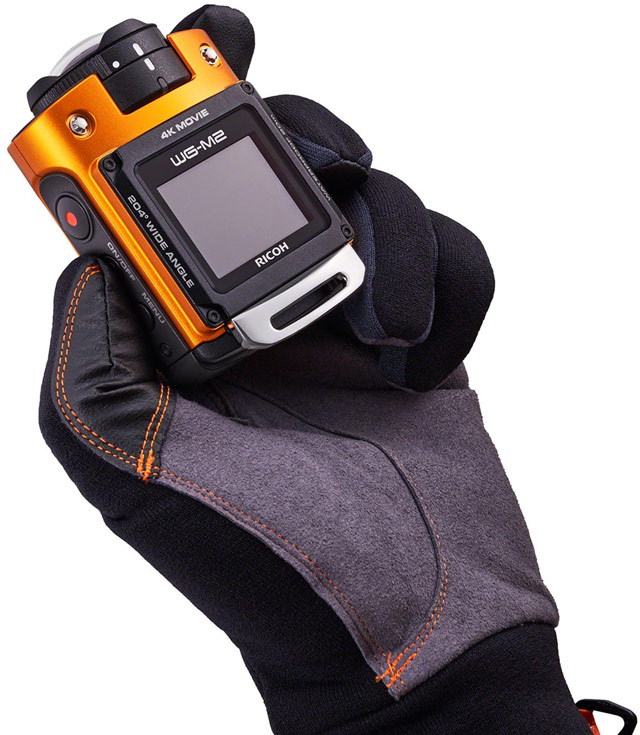 В дополнение к камере Ricoh предлагает рукоятку, крепление на шлем и другие принадлежности.