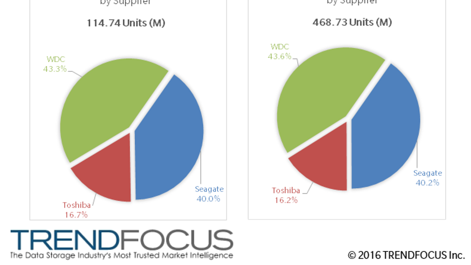 Аналитики Trendfocus оценили рынок HDD по итогам прошедшего года. За последний квартал 2015 года на рынок было поставлено 115 млн накопителей. Это меньше, нежели за аналогичный период предыдущего года, но источник не указывает, насколько.