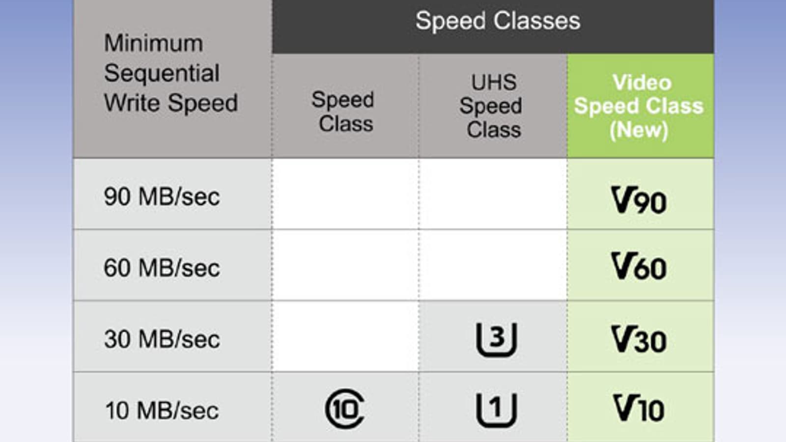 Организация SD Association, занимающаяся разработкой стандартов для карт памяти SD, представила новый класс скорости — Video Speed Class. Соответствующая маркировка позволит идентифицировать носители, подходящие для работы с видео высокого разрешения. Обозначения класса Video Speed Class будут наноситься на карточки формата SDHC и SDXC, поддерживающие UHS-I и UHS-II.