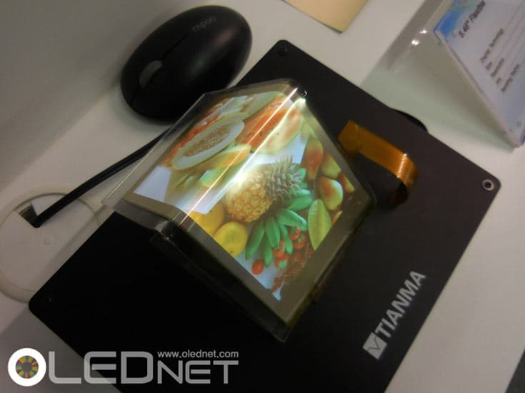 По данным источника, китайская компания Tianma, специализирующаяся на разработке и выпуске панелей AMOLED, на днях показала свою первую гибкую панель AMOLED. Панель размером 5,46 дюйма по диагонали имеет разрешение HD (1280 х 720 пикселей). Панель можно изгибать по дуге с минимальным радиусом 20 мм.