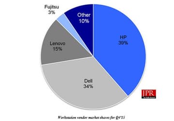 Лидером рынка рабочих станций является компания HP, доля которой равна 39%