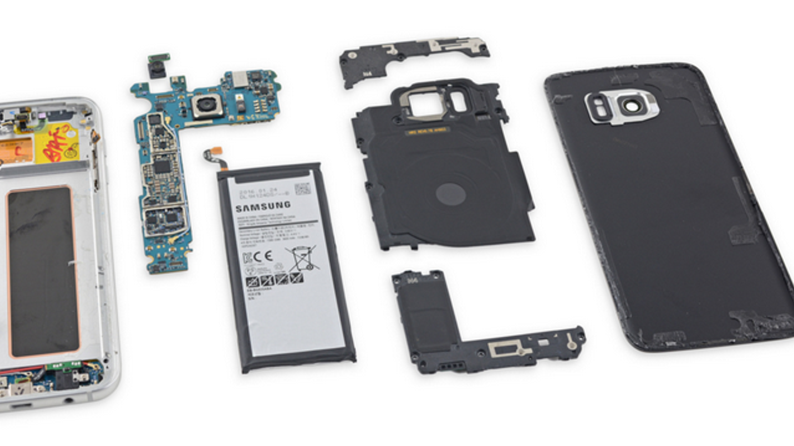 Вслед за меньшим братом на препараторский стол iFixit попал смартфон Samsung Galaxy S7 edge. Забегая вперёд, отметим — наличие изогнутого дисплея не поспособствовало снижению баллов по сравнению с Galaxy S7. То есть S7 edge также заработал три балла из десяти.