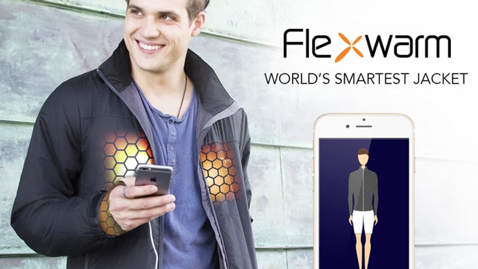 Создатели показанной на иллюстрациях куртки Flexwarm называют ее самой умной в мире. Особенность куртки — в наличии обогревательных элементов, встроенных в ткань в области спины, груди и запястий. В рукавах есть элементы в виде беспалых перчаток с подогревом.