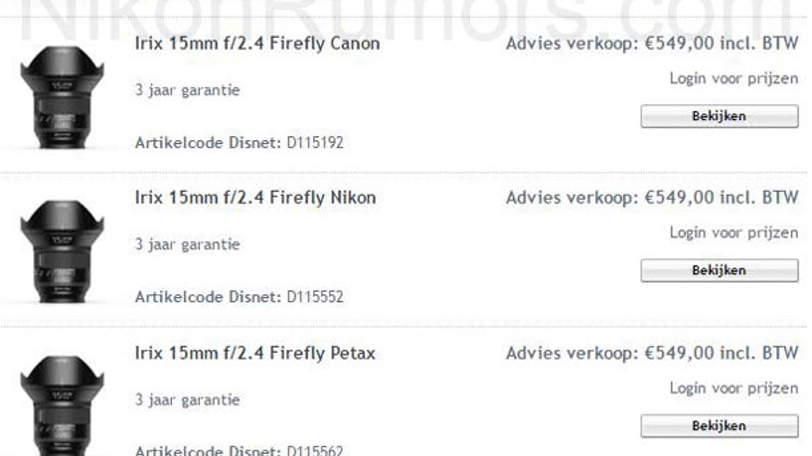 Анонсируя полнокадровые объективы Irix 15mm f/2.4 Blackstone и Irix 15mm f/2.4 Firefly, производитель не стал называть точную дату начала продаж и цены, ограничившись обещанием, что эти сверхширокоугольные объективы с ручной фокусировкой появятся в продаже нынешней весной, а доступны они будут в вариантах с креплениями Canon EF, Nikon F и Pentax K.