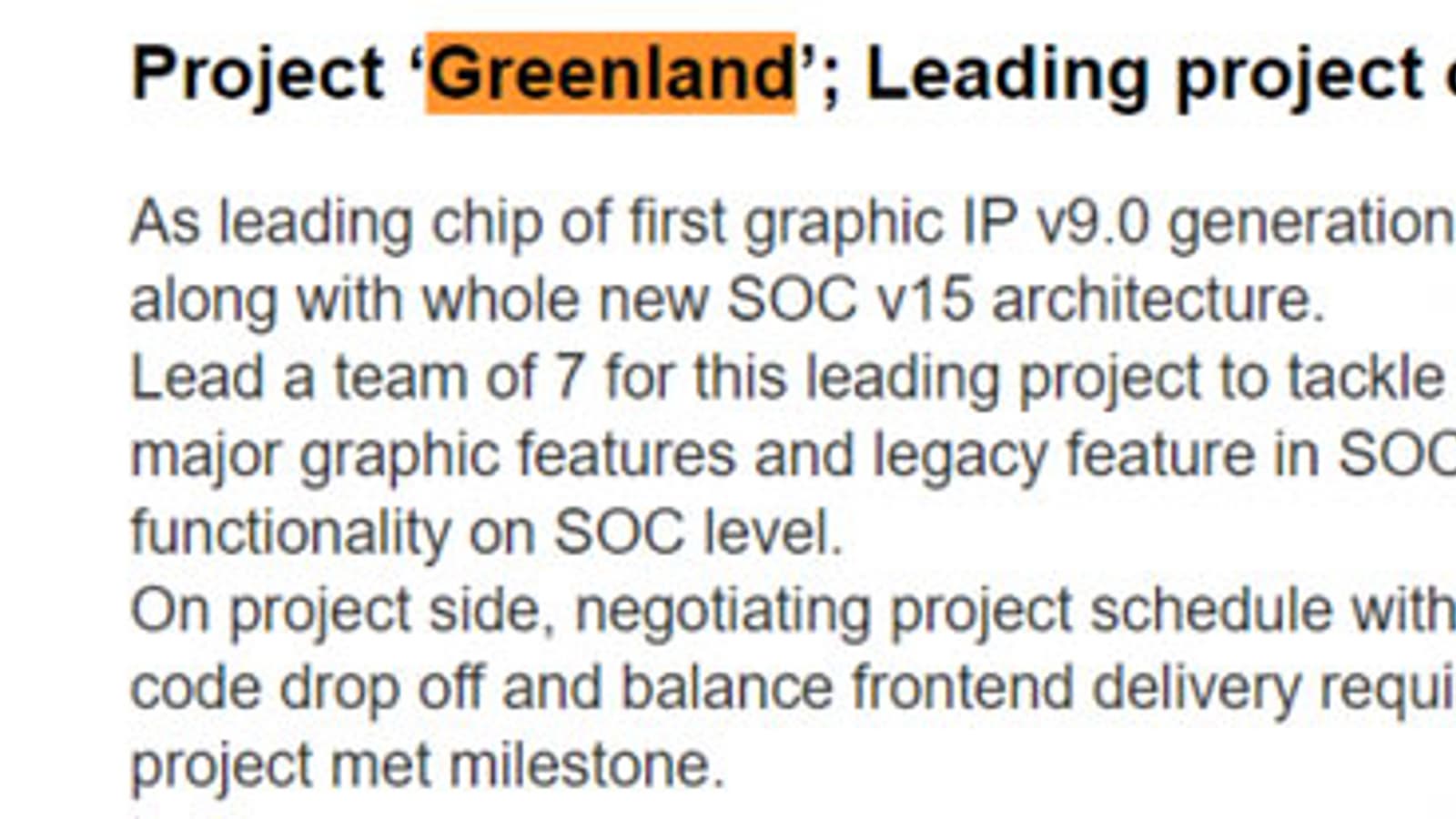 В сети появились сведения о конфигурации флагманского графического процессора AMD следующего поколения, известного под условными наименованиями Greenland и Vega 10. Как следует из профиля одного из разработчиков в LikenIn, этот GPU будет иметь 4096 потоковых процессоров. Как известно, столько же потоковых процессоров имеет GPU Fiji (AMD Radeon R9 Fury X). Однако в Greenland используется «графическое ядро v9.0», тогда как GPU Fiji относится к предыдущему поколению.