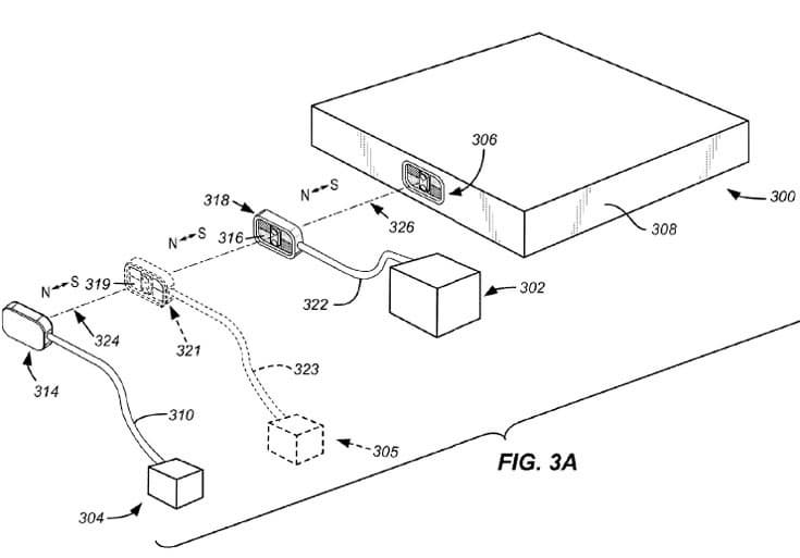 Уменьшить число разъемов в ноутбуке или мини-ПК позволяет изобретение, на которое компании Apple в США на днях был выдан патент №9300083. В этом патенте описаны разъемы с магнитной фиксацией, соединяемые стопкой. Суть изобретения лучше всего передают иллюстрации.