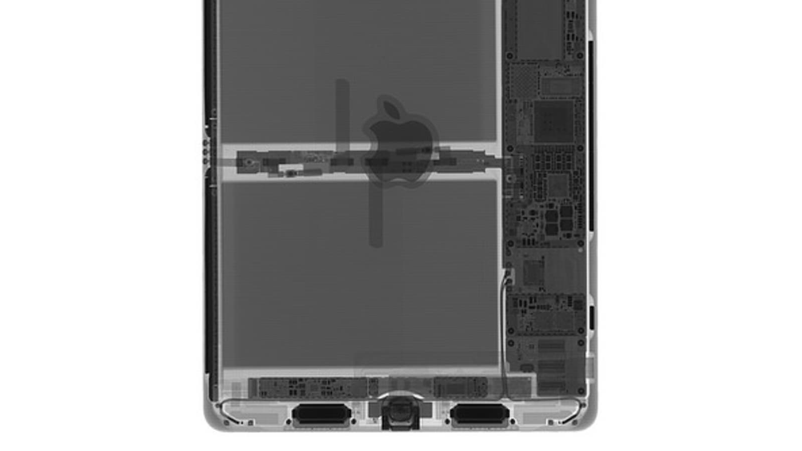 На системной плате расположились SoC Apple APL1021 A9X, микросхема оперативной памяти Samsung K3RG1G1 LPDDR4 объёмом 2 ГБ, микросхема флэш-памяти SK Hynix H23QEG8VG1ACA, модуль Wi-Fi Apple 339S00109, контроллер NFC NXP 66V10, усилитель Maxim Integrated MAX98721BEWV и прочее.