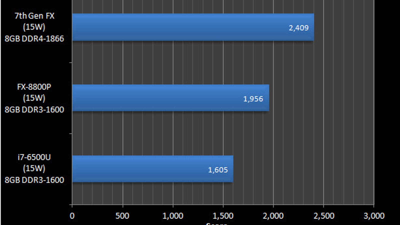 Источник опубликовал данные о производительности APU AMD седьмого поколения под условным наименованием Bristol Ridge. Этот процессор рассчитан на выпуск по 28-нанометровой технологии и установку в гнездо AM4. В нем интегрирован CPU на архитектуре Excavator, GPU на архитектуре Graphics CoreNext 1.2 и южный мост (FCH).