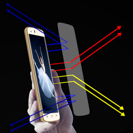 При формировании изображения смартфон отсеивает синий свет при помощи соответствующей обработки сигнала, одновременно с этим производится снижение искажения цветов при сохранении высокого уровня яркости. Кроме того, разработчики модифицировали светодиодную подсветку экрана, уменьшили пиковую длину волны синего света и произвели другие изменения, которые вместе позволяют отфильтровывать 90% вредного излучения.