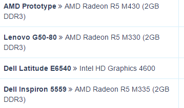 Многие графические решения серии AMD Radeon M400 получены разгоном и переименованием представителей предыдущего поколения