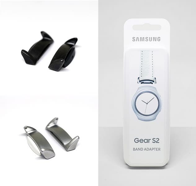 Теперь можно. Только для этого придётся докупить переходник Gear S2 Band Adapter. Он позволит использовать с часами любые 20-миллиметровые ремешки, какие только заблагорассудится. Аксессуар доступен в двух цветовых вариантах: сером и чёрном. Пока новинка доступна лишь на некоторых рынках, но вскоре появится в и других странах. В Германии, к примеру, переходник стоит 26 евро.
