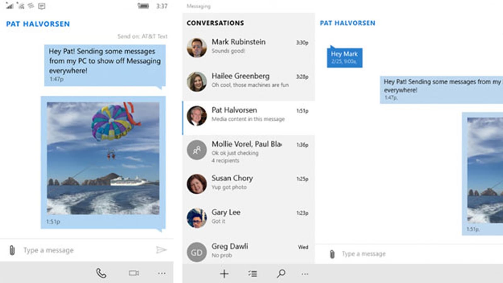 Одновременно Microsoft отказалась от интеграции Skype в систему обмена сообщениями Windows 10 в пользу новой версии этого приложения — Skype Universal Windows Platform (UWP). В версии UWP, включенной в Windows 10 Desktop Insider Preview, добавлены возможности групповой работы, включая видеоконференции. Версию Skype для Windows 10 Mobile разработчик обещает выпустить в ближайшее время.