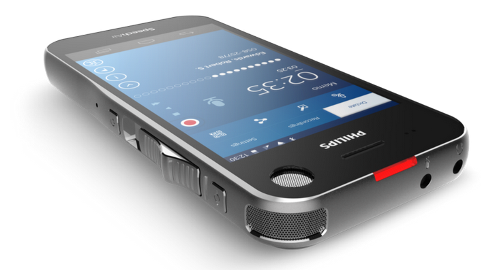 Philips SpeechAir — диктофон, который сильно выделяется на фоне своих собратьев. Дело в том, что это устройство работает под управлением ОС Android со всеми вытекающими последствиями. То есть тут очень компактный по меркам рынка смартфонов, но огромный для диктофона дисплей диагональю 4 дюйма разрешением 800 х 480 пикселей, неизвестная SoC с парой немолодых ядер Cortex-A9 и 1 ГБ оперативной памяти. Также присутствует 16 ГБ флэш-памяти, адаптеры беспроводных интерфейсов, 5-мегапиксельная камера и аккумулятор ёмкостью 2700 мА•ч, чего должно хватить для 12 часов аудиозаписи или 97 часов в режиме ожидания. Работает аппарат под управлением Android 4.4.2 с фирменной оболочкой Philips. Это означает, что пользователь имеет возможность устанавливать свои программы, хотя достаточно старая платформа явно послужит определённым ограничителем.
