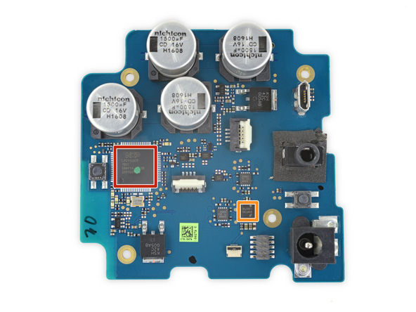На системной плате расположилось множество компонентов. Среди них микроконтроллер STMicroelectronics 32F072R8 с ядром Cortex-M0, адаптер Toshiba TC358870XBG 4K HDMI to MIPI, SoC Alpha Imaging Technology AIT8328, две однокристальные системы Nordic Semiconductor nRF24LU1P, микроконтроллер NXP Semiconductors 11U35F и прочее.