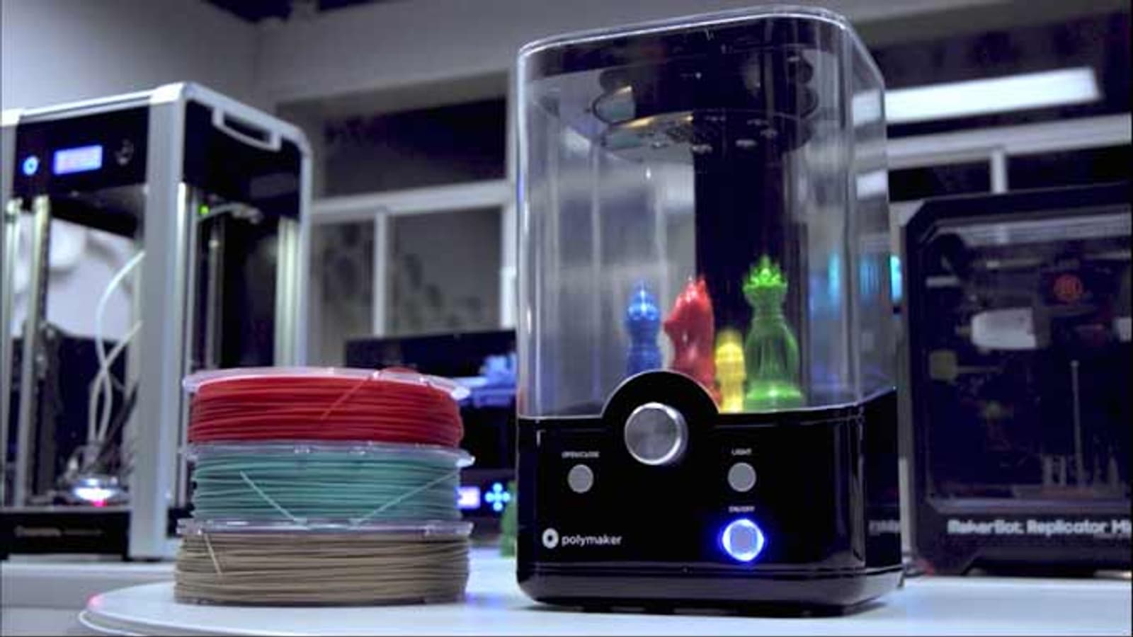 Решить проблему взялись создатели расходного материала PolySmooth и устройства Polysher. По их словам, PolySmooth подходит для любого принтера FDM и предлагается в ассортименте из 11 разных цветов. Особенность этого материала в том, что его можно растворить в спирте. На этом построен принцип работы устройства Polysher: отпечатанное изделие помещается в замкнутый объем, где подвергается воздействию спиртового «тумана», формируемого с помощью ультразвукового излучателя. Иначе говоря, Polysher напоминает бюджетные увлажнители воздуха. В качестве расходного материала можно использовать этиловый или изопропиловый спирт.